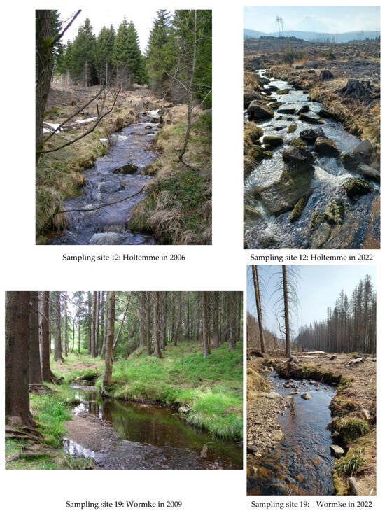 - Langheinrich, U.; Böhme, D.; Wegener, U.; Lüderitz, V. Streams in the Harz National Parks (Germany)—A hydrochemical and hydrobiological evaluation. Limnologica 2002, 32, 309–321. [Google Scholar] [CrossRef]