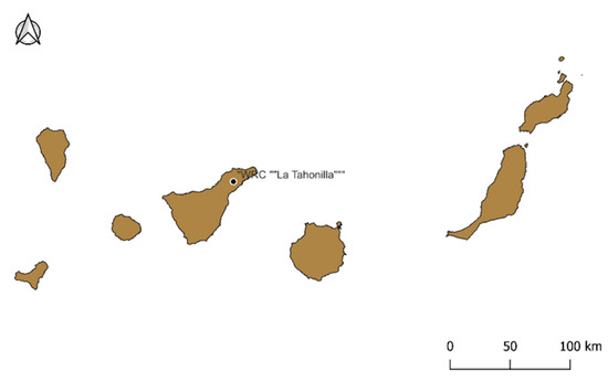 Map of the Canary Archipelago. In the middle of the picture appears the Island of Tenerife and the WRC “La Tahonilla”. Own source obtained from QGIS 3.36.3.