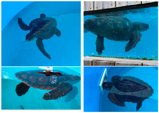 - Monreal-Pawlowsky, T.; Marco-Cabedo, V.; Manteca, X.; Membrive, G.P.; Sanjosé, J.; Fuentes, O.; Jiménez, E. Environmental enrichment facilitates release and survival of an injured loggerhead sea turtle (Caretta caretta) after ten years in captivity. J. Zoo Aquar. Res. 2017, 5, 182–186. [Google Scholar]