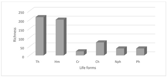 The life form is determined based on the Raunkiaer system: Th for therophyte; Cr for Cryptophyte (including Geophytes); Hm for Hemicryptophytes; Ch for Chamaephytes; Ph for phanerophytes; and NPh for nanophanerophytes.