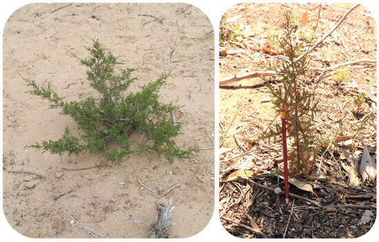 Juniperus species have been observed to exhibit characteristics of pioneer species [16,17], often acting as such in the advanced stages of degradation of Quercus ilex. Forests [18]. Furthermore, these species have been observed to thrive in less competitive environments, including maritime dunes situated at altitudes of 50 m or more and limestone rocky mountains at elevations exceeding 2000 m [18,19,20,21,22].