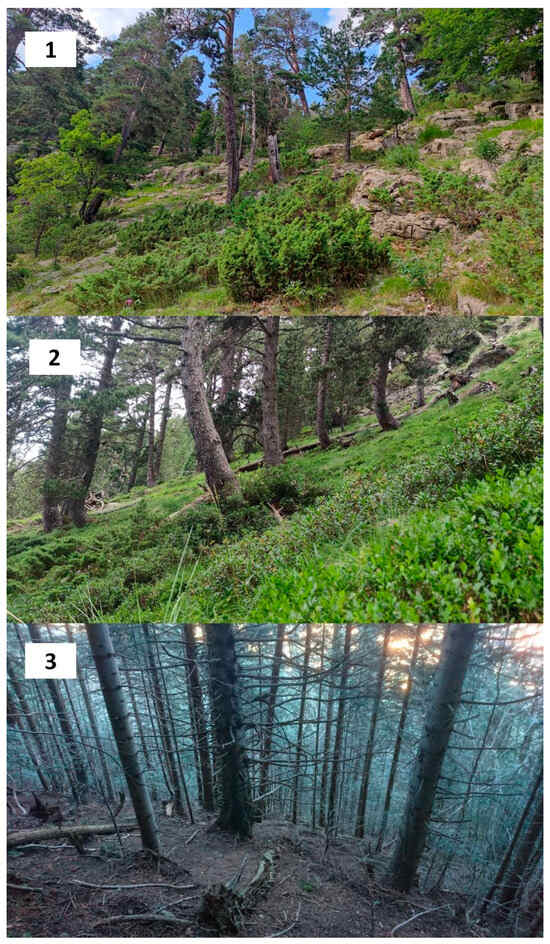 In this part of the Pyrenees, the PC lives in mature coniferous forest dominated by mountain pine, in subalpine habitats with Scots pine and, to a lesser extent, European larch (Larix europaea) and spruce (Picea abies), in combination with shrubs that provide shelter, food, nesting substrate, and chick-rearing habitats [4].