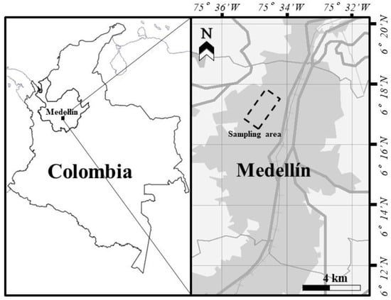 - Paniagua-Villada, C.; Garizábal-Carmona, J.A.; Martínez-Arias, V.M.; Mancera-Rodríguez, N.J. Built vs. Green Cover: An Unequal Struggle for Urban Space in Medellín (Colombia). Urban Ecosyst. 2024, 27, 1055–1065. [Google Scholar] [CrossRef]