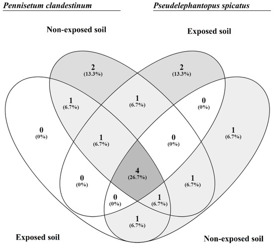 Gallego, J.L.; Agudelo, A.M.; Morales, C.M.; Tamayo-Londoño, A.; Soler-Arango, J.; Tirado-Ballestas, I.P.; Arango-Correa, A. The Diversity Indices of Culturable Bacteria from the Rhizosphere of Pennisetum clandestinum and Pseudelephantopus spicatus in Urban Soil. Ecologies 2025, 6, 49. https://doi.org/10.3390/ecologies6030049