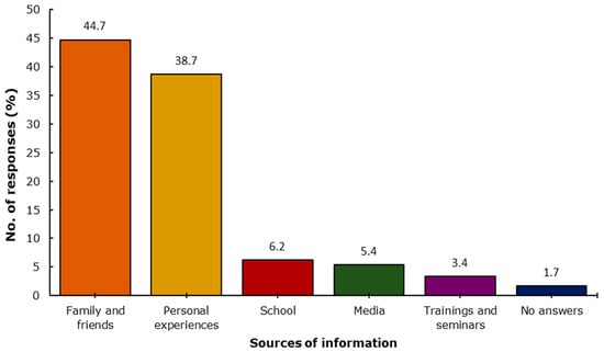 To analyze the socio-demographic variables of respondents, we employed descriptive statistics. The results of the recognition rate and the rest of the questions from the main part of the questionnaire are shown as response frequencies for the entire sample. The respondents were allowed to give multiple responses to the question related to channels for knowledge transmission (these results are presented as the percentage of respondents giving each response). We used thematic analysis [46] to analyze open-ended questions where respondents could justify their answers.