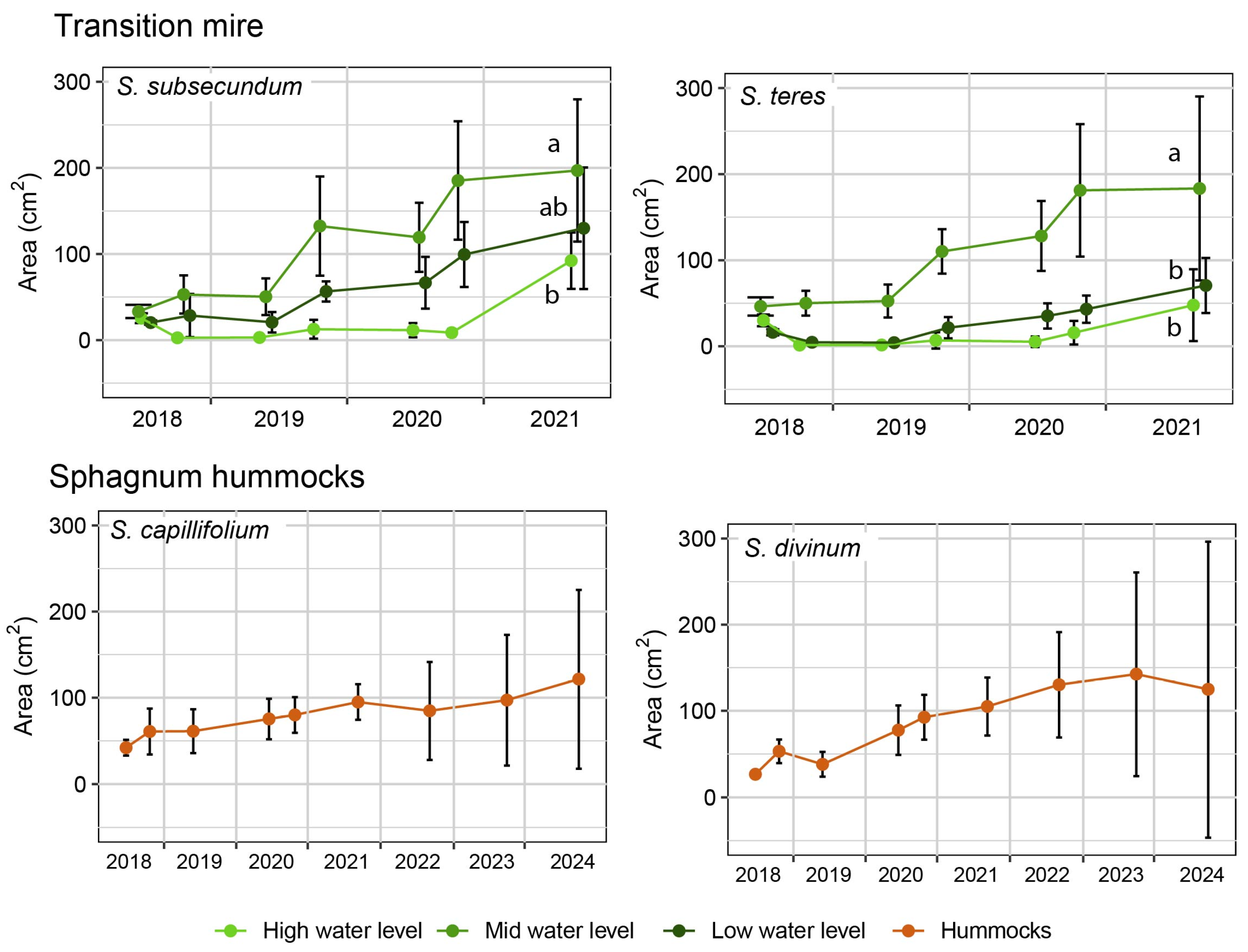 - Bengtsson, F.; Granath, G.; Rydin, H. Photosynthesis, growth, and decay traits in Sphagnum—A multispecies comparison. Ecol. Evol. 2016, 6, 3325–3341. [Google Scholar] [CrossRef] [PubMed]
