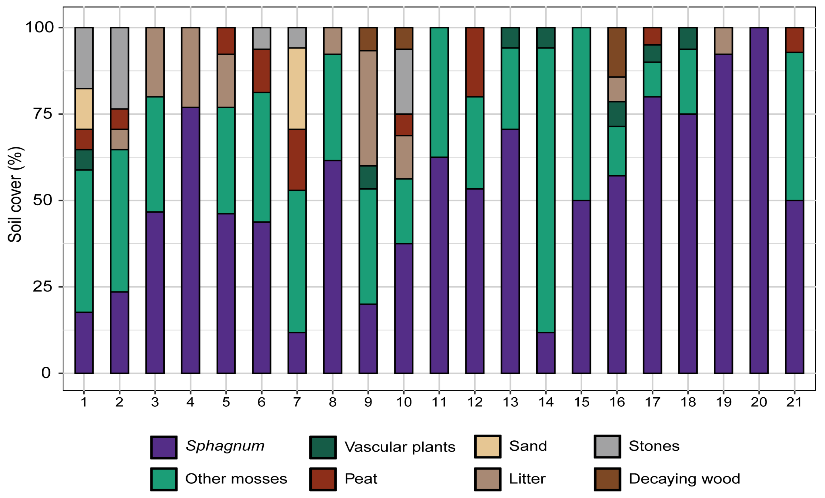 - Granath, G.; Strengbom, J.; Rydin, H. Rapid ecosystem shifts in peatlands: Linking plant physiology and succession. Ecology 2010, 91, 3047–3056. [Google Scholar] [CrossRef] [PubMed]