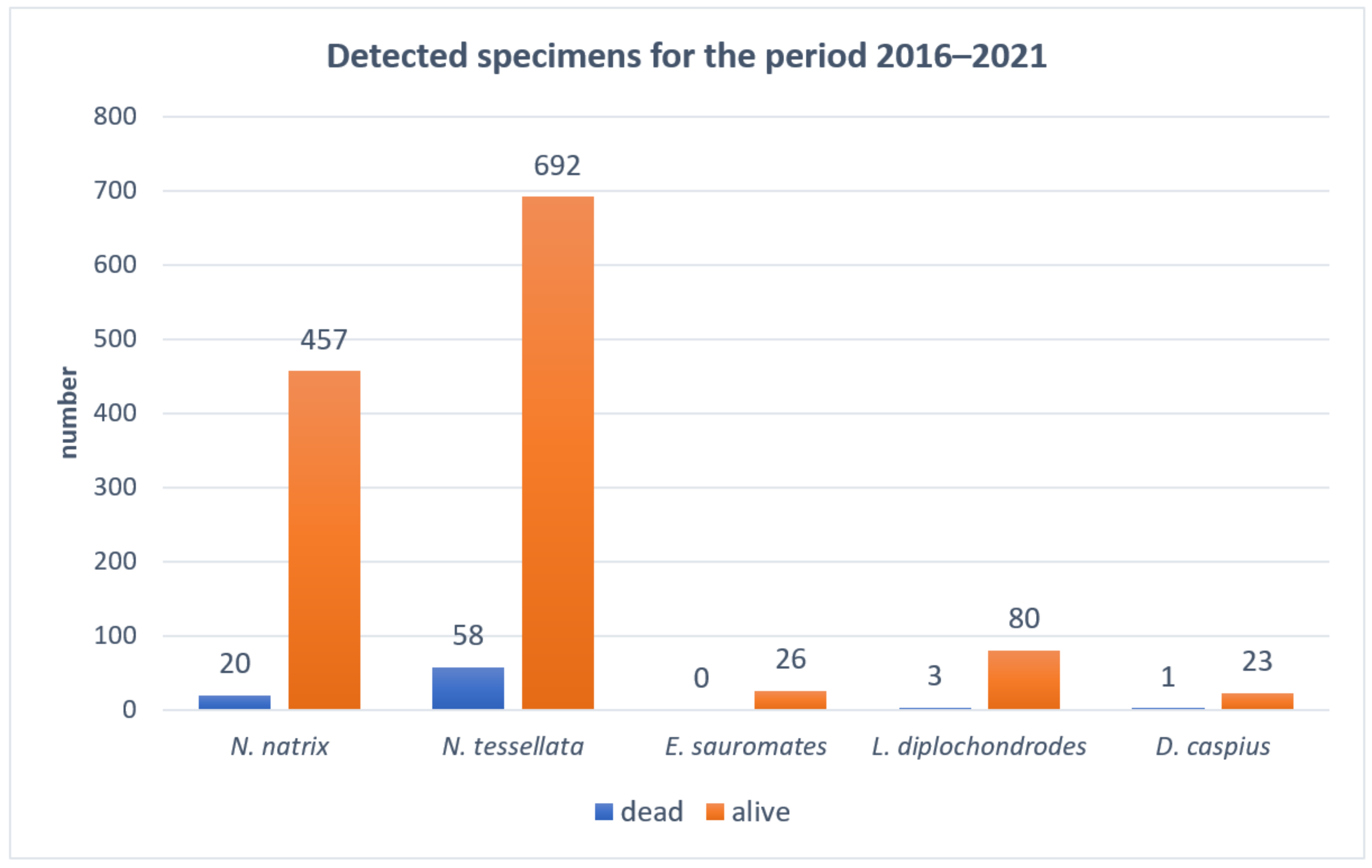 - Stojanov, A.; Tzankov, N.; Naumov, B. Die Amphibien und Reptilien Bulgariens. In Frankfurt Contributions to Natural History/Frankfurter Beiträge zur Naturkunde; Edition Chimaira: Frankfurt am Main, Deutschland, 2011; p. 591. [Google Scholar]