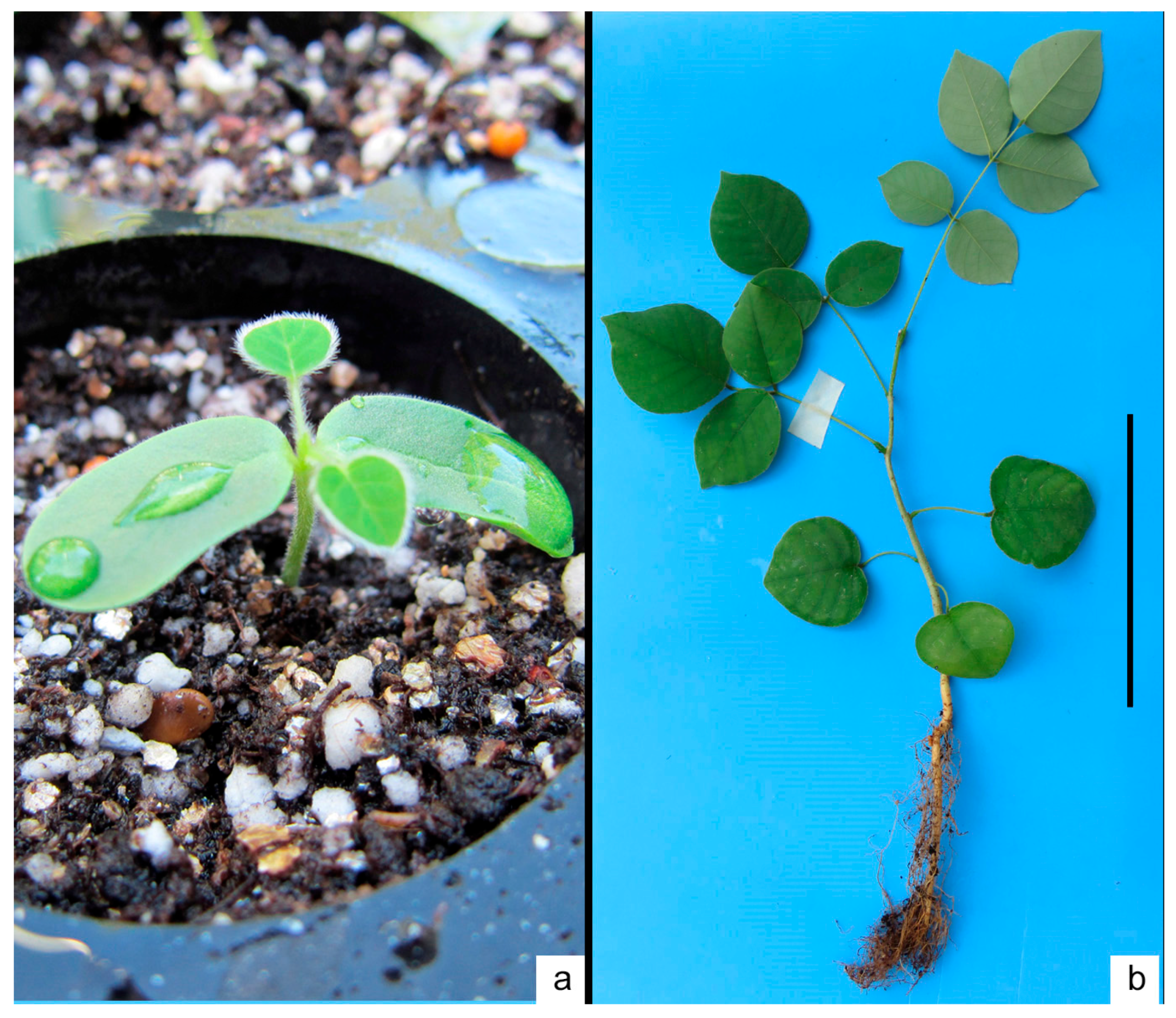 - Gurgel, E.S.C.; Dos Santos, J.U.M.; Lucas, F.C.A.; Bastos, M.D.N.D.C. Leguminosae Seedlings Morphology and the Systematic Potential. Rodriguésia 2012, 63, 065–073. [Google Scholar] [CrossRef]