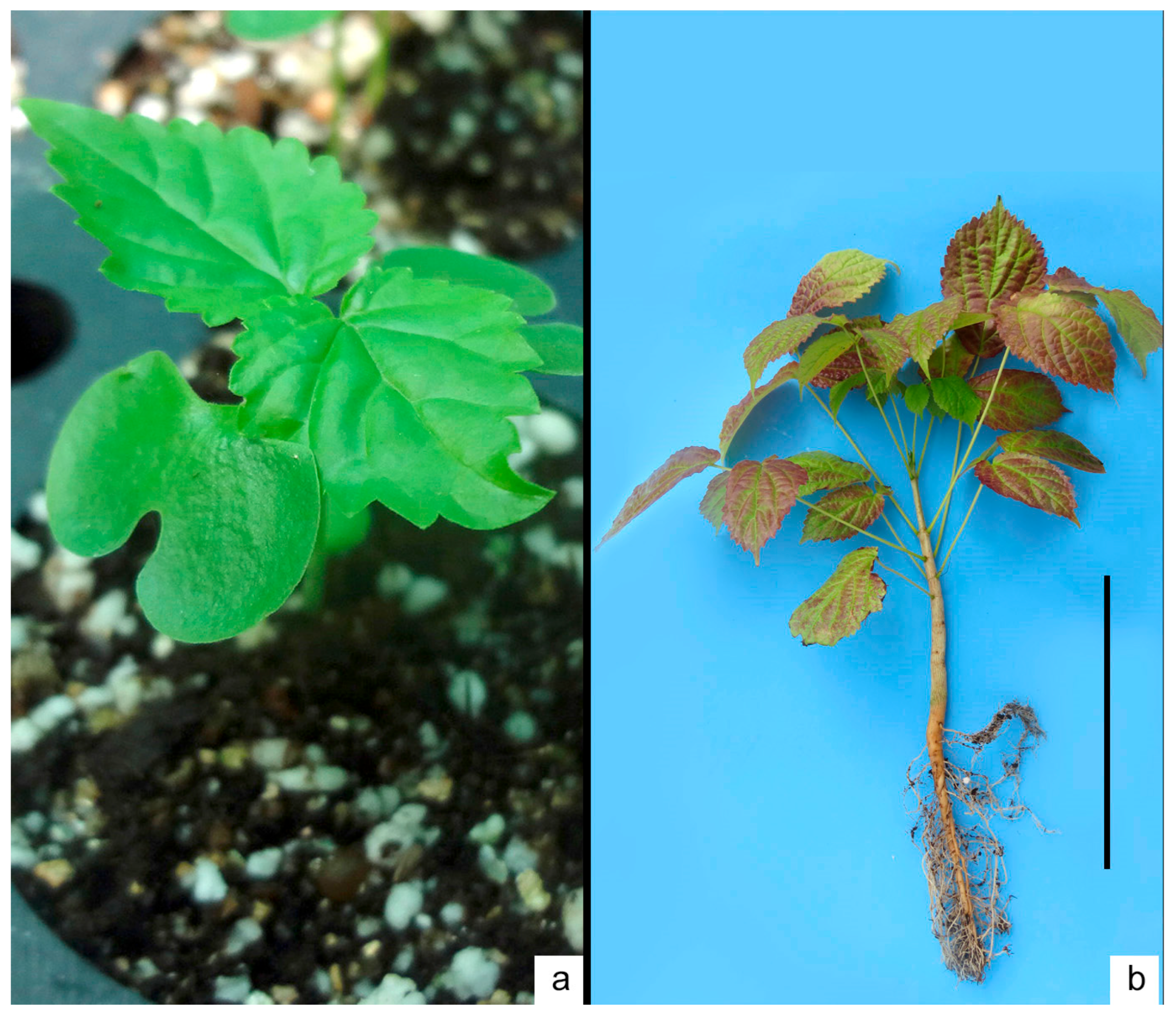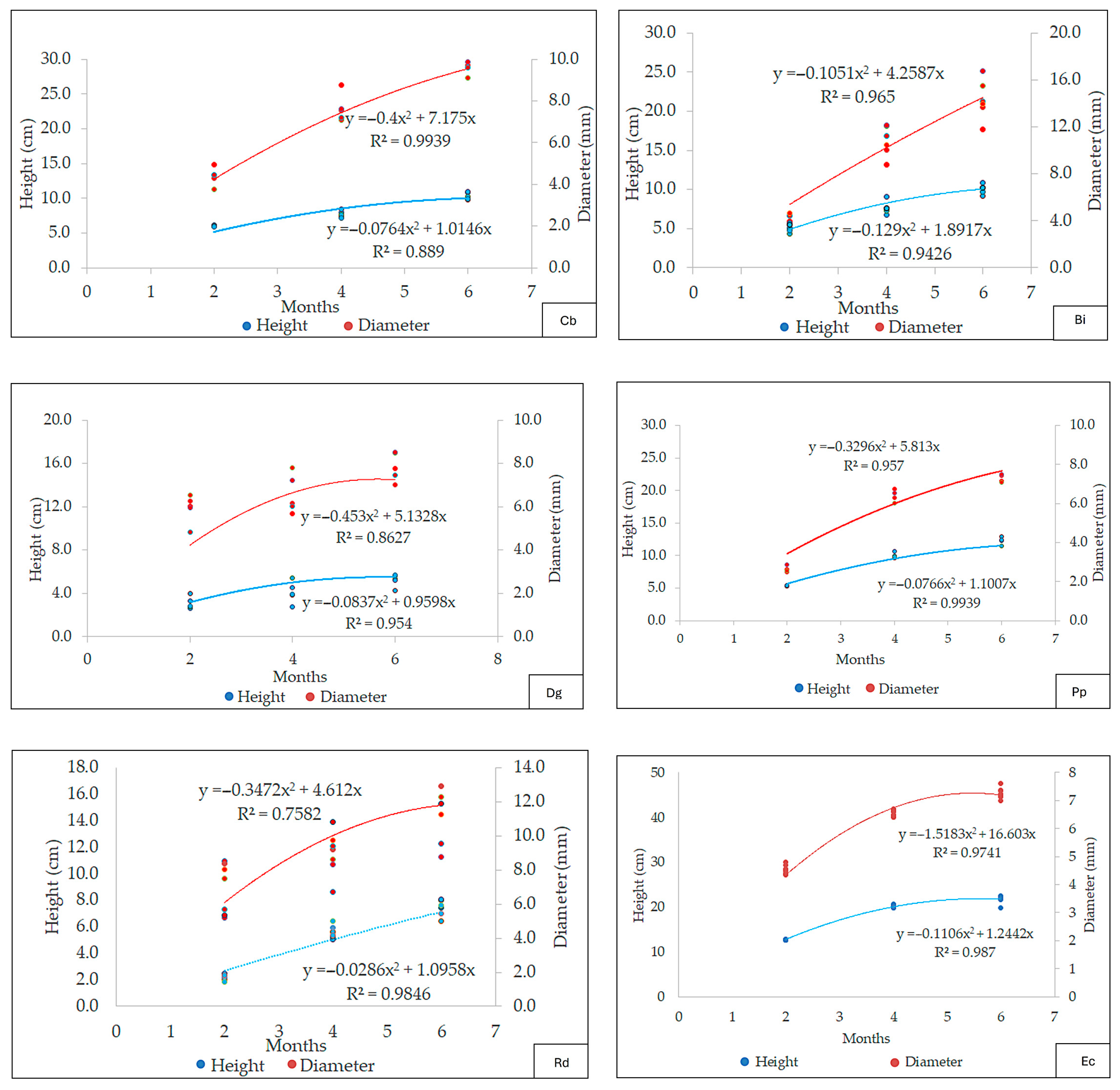 | Species | Stem Height (cm) | Stem Basal Diameter (mm) | Number of Eophylls |