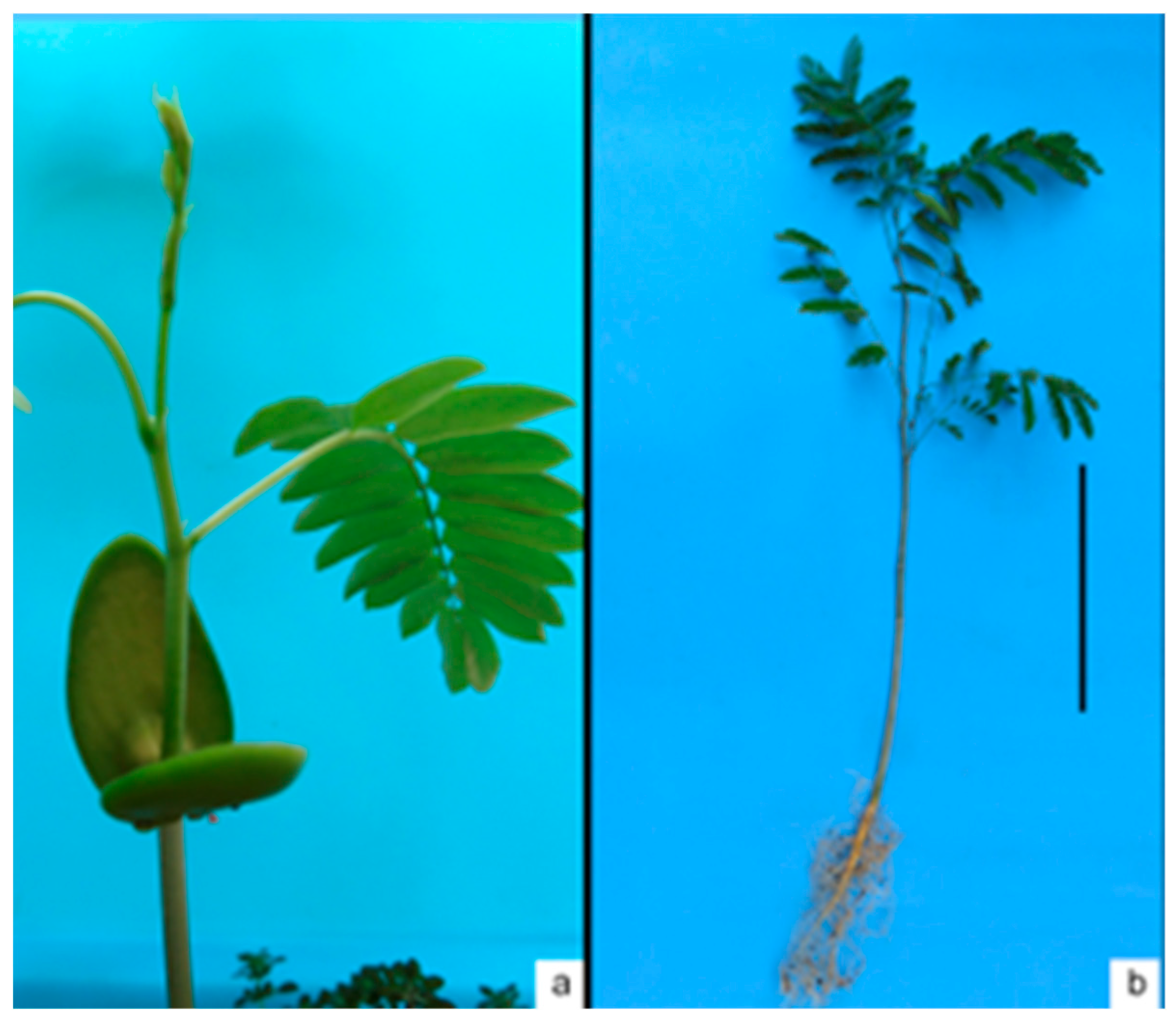 - Osaigbovo, A.U.; Nwaoguala, C.N.C. Growth Response of Black Velvet Tamarind (Dialium guineense Willd) Seedling to Different Potting Media. J. Appl. Nat. Sci. 2011, 3, 166–170. [Google Scholar] [CrossRef]