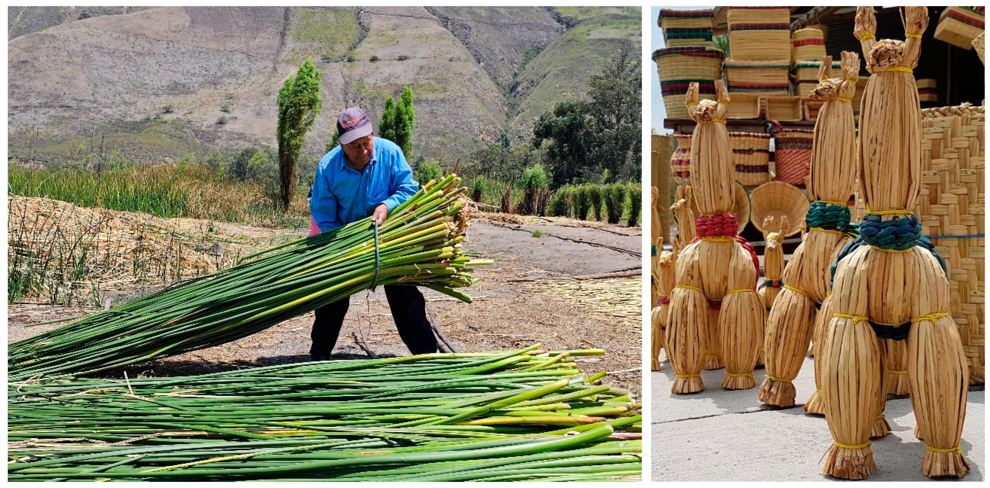 - Banack, S.A.; Rondón, X.J.; Diaz-Huamanchumo, W. COVER ARTICLE: Indigenous Cultivation and Conservation of Totora (Schoenoplectus californicus, Cyperaceae) in Peru. Econ. Bot. 2004, 58, 11–20. [Google Scholar] [CrossRef]