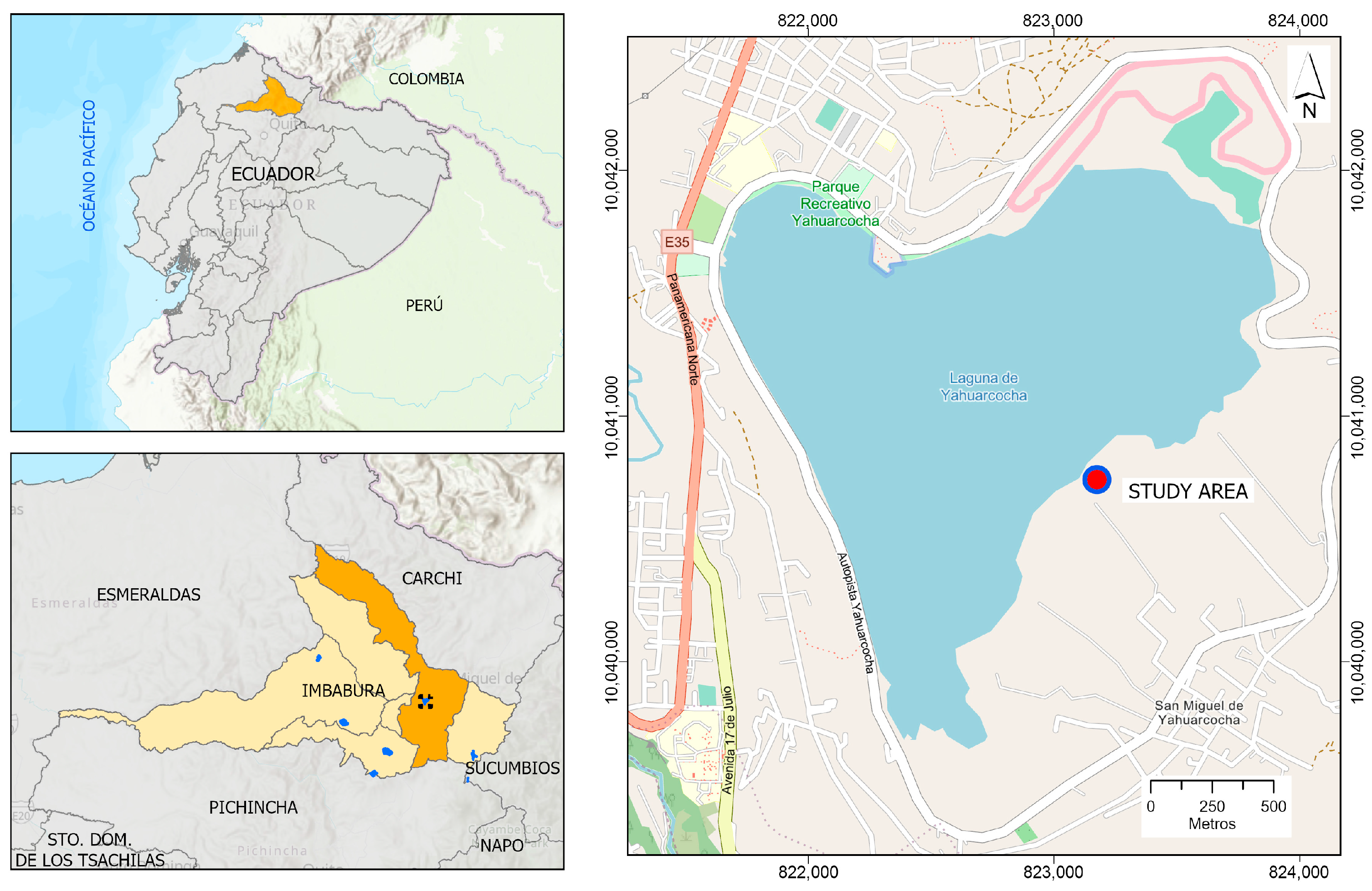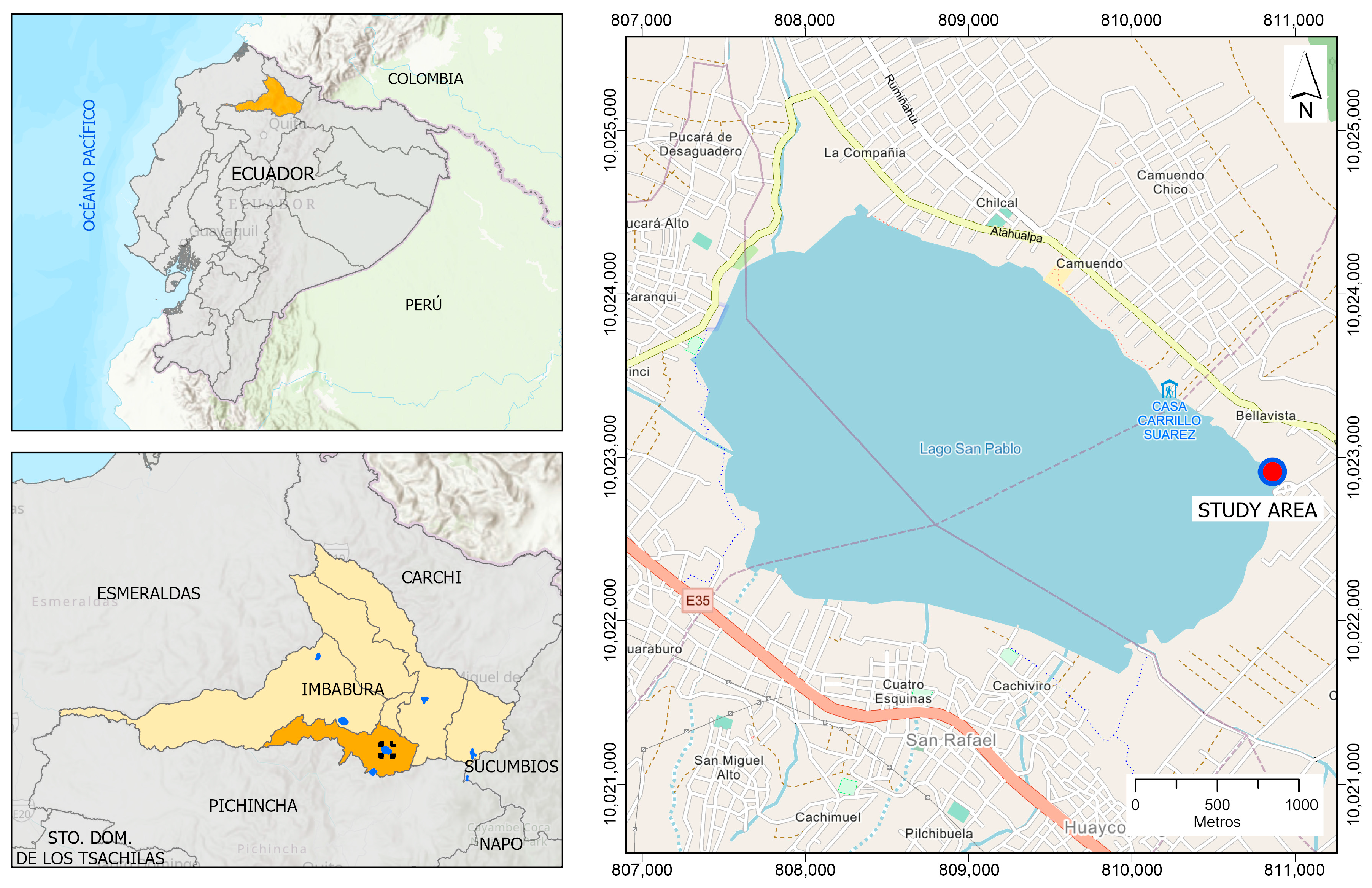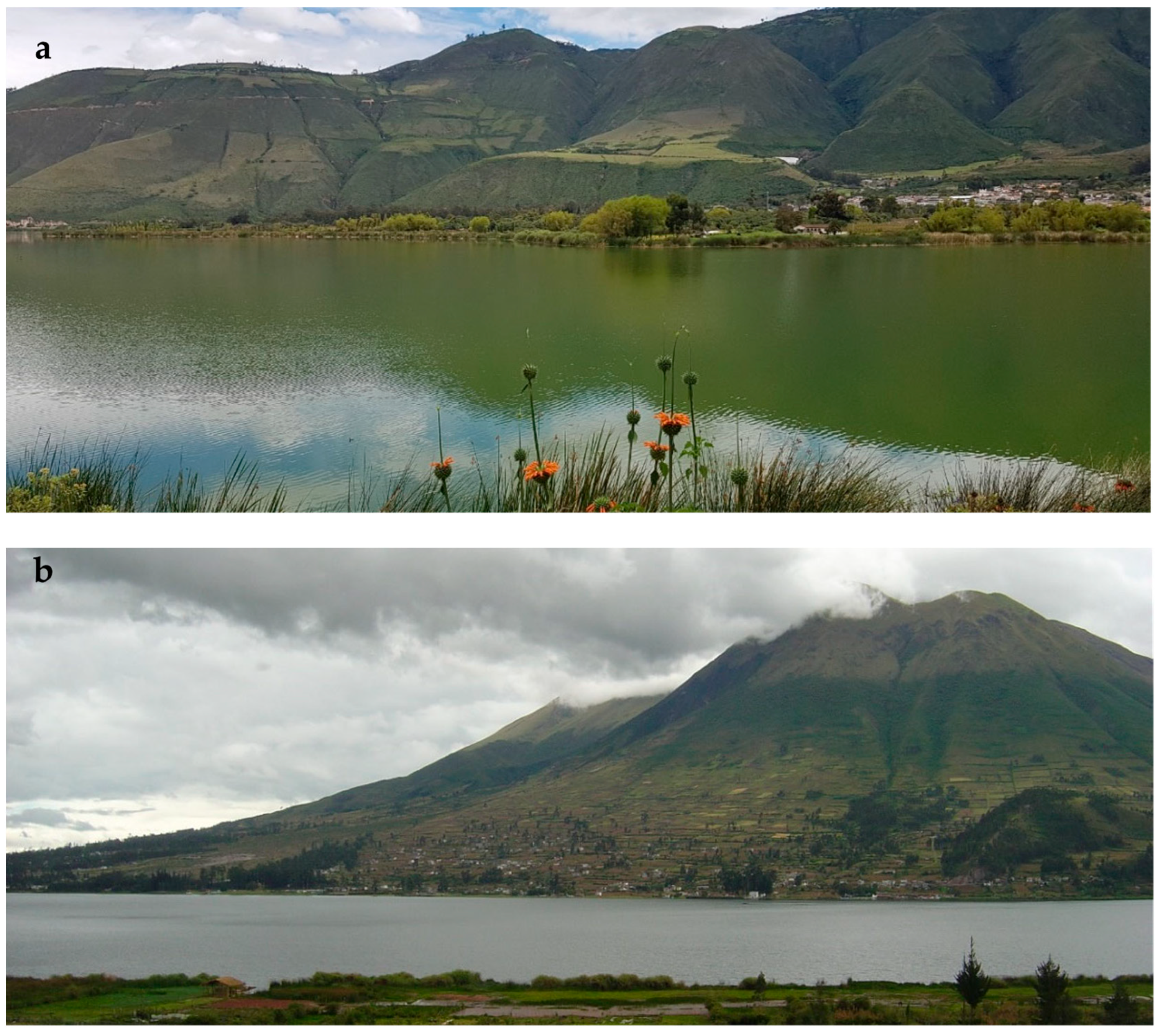 - Terneus Jácome, E. Vegetación acuática y estado trófico de las lagunas andinas de San Pablo y Yahuarcocha, provincia de Imbabura, Ecuador [Aquatic Vegetation and Trophic Status of the Andean Lagoons of San Pablo and Yahuarcocha, Imbabura Province, Ecuador]. Rev. Ecuat. Med. Cienc. Biol. 2017, 35, 121–123. (In Spanish) [Google Scholar]