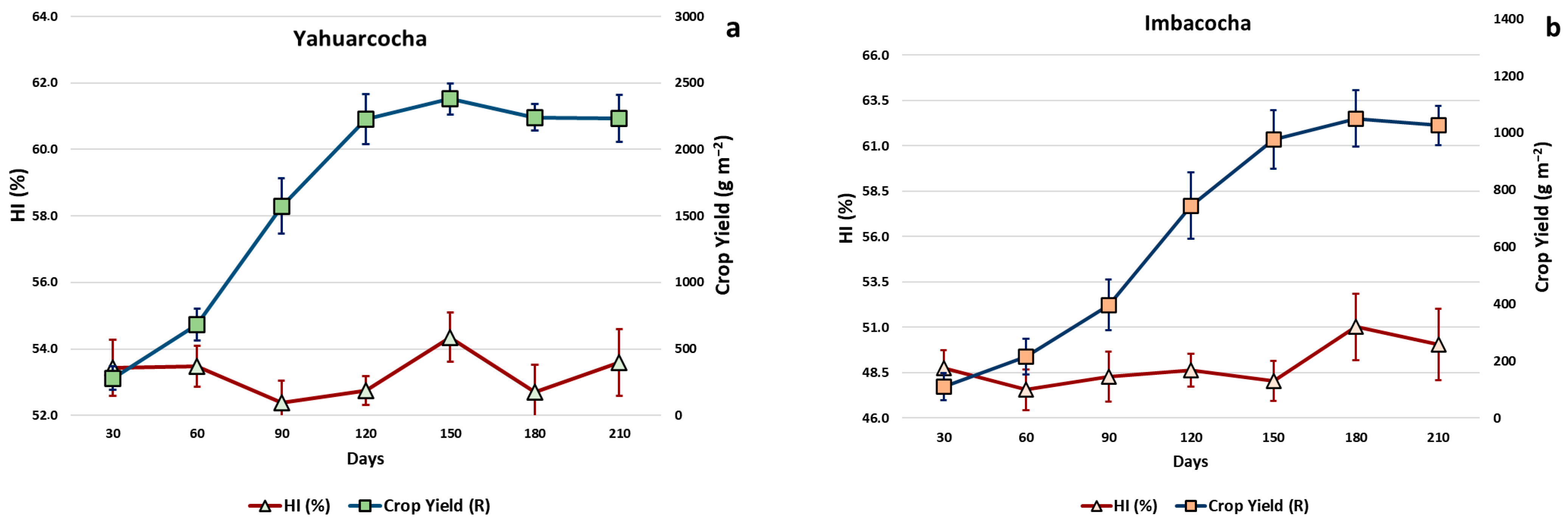- Harvest Index (HI): Ratio between the yield of the harvestable organ and the plant biomass [36].