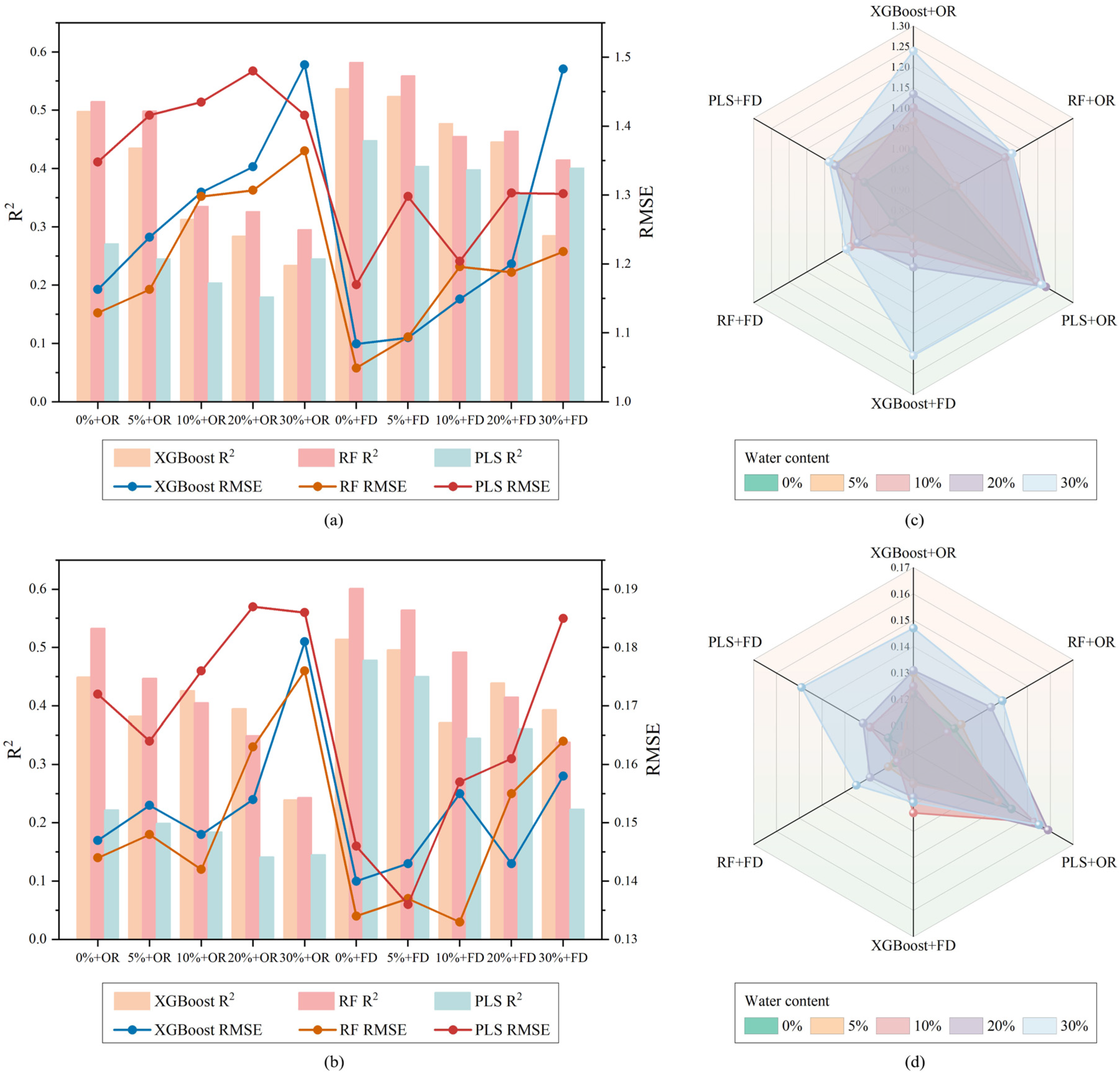 - Model and Preprocessing Choices: The choice of algorithm and spectral preprocessing significantly impacts results. Nonlinear models like RF and XGBoost, as demonstrated in our work, are better suited to handle the complex, non-linear interactions introduced by moisture compared to linear models like PLSR.