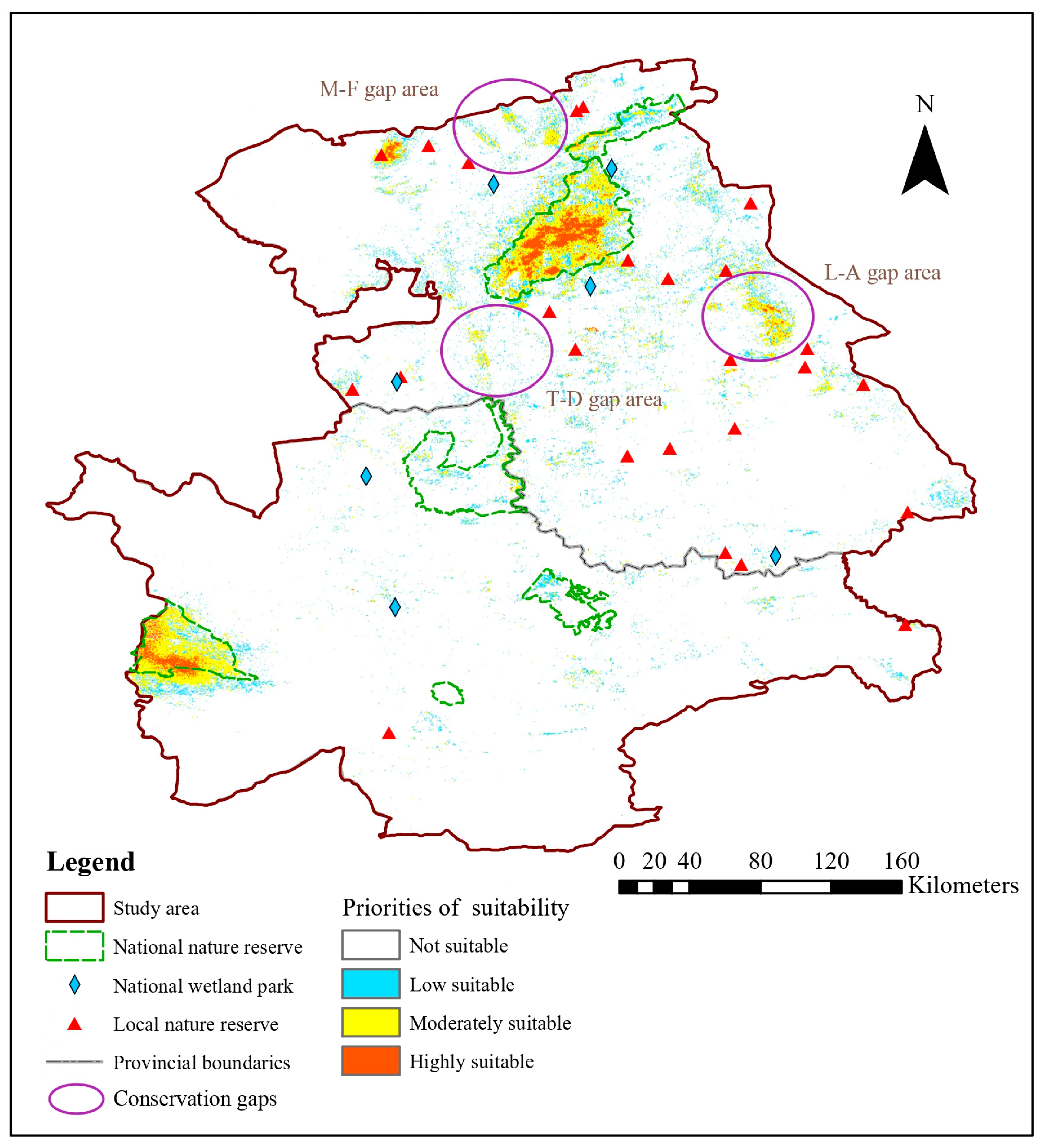 | Low suitable | 3891.09 | 4.13 | 7622.31 | 8.09 | 2400.68 | 2.55 | 941.45 | 1.00 | |