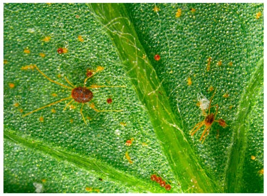 - Migeon, A.; Dorkeld, F. Spider Mites Web: A Comprehensive Database for the Tetranychidae. Available online: https://www1.montpellier.inrae.fr/CBGP/spmweb/public/ (accessed on 20 August 2025).
