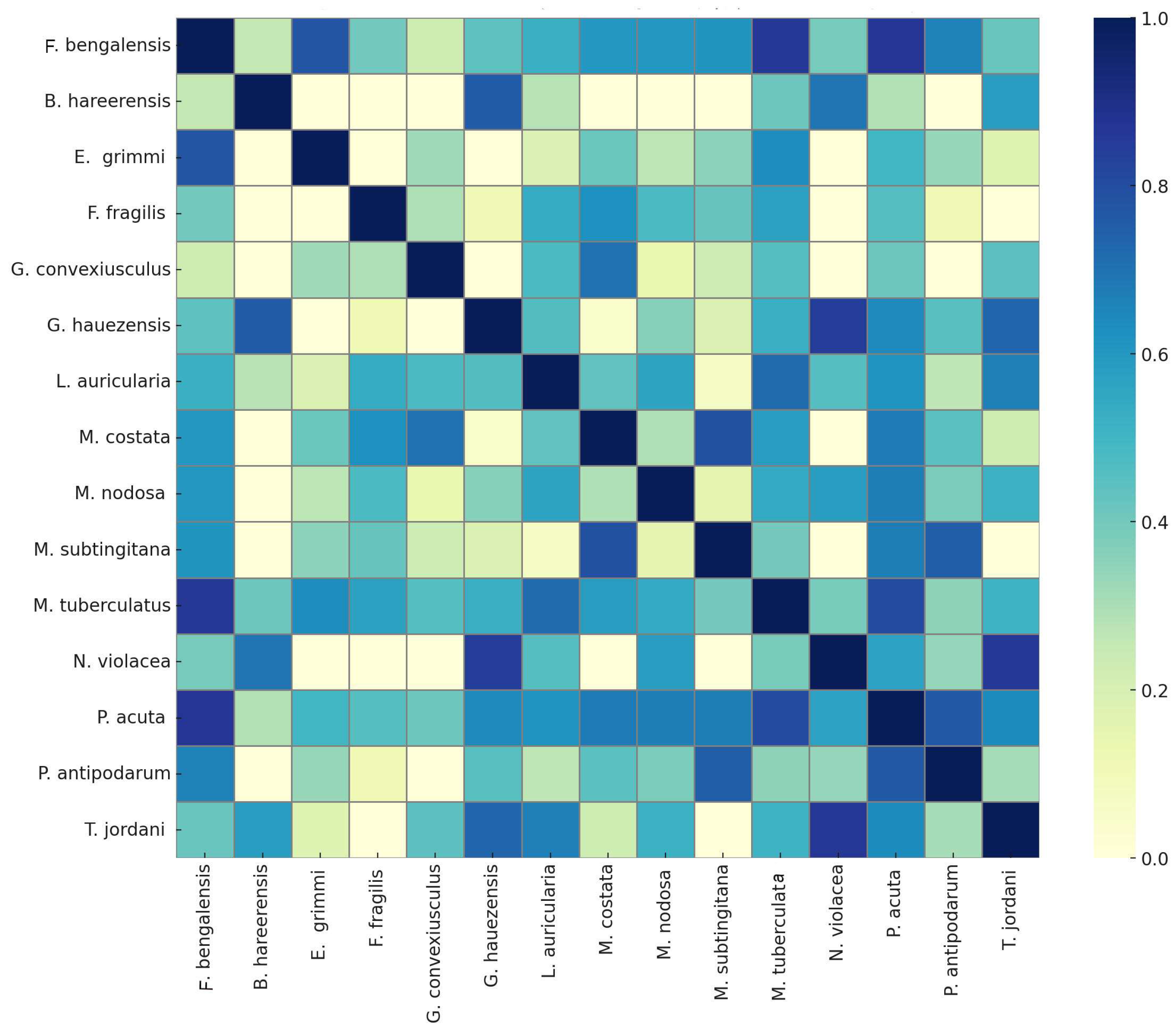 | Species 1 | Species 2 | Observed Pianka’s Index | p-Value | Pair | Significance |