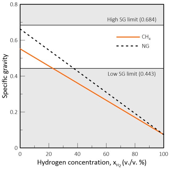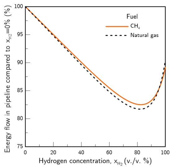 - Schouten, J.; Michels, J.; Janssen-van Rosmalen, R. Effect of H2-injection on the thermodynamic and transportation properties of natural gas. Int. J. Hydrogen Energy 2004, 29, 1173–1180. [Google Scholar] [CrossRef]