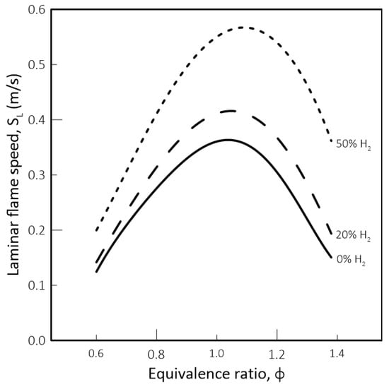 - Amirante, R.; Distaso, E.; Tamburrano, P.; Reitz, R.D. Laminar flame speed correlations for methane, ethane, propane and their mixtures, and natural gas and gasoline for spark-ignition engine simulations. Int. J. Engine Res. 2017, 18, 951–970. [Google Scholar] [CrossRef]