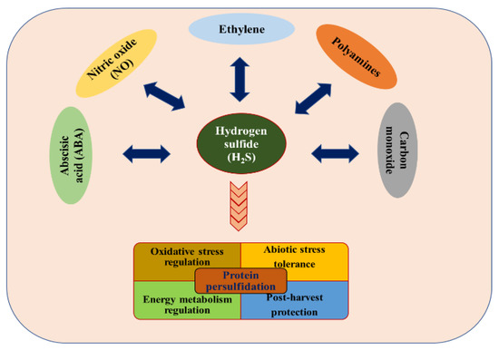 Role of hydrogen sulfide in mediating the different physiological processes in plants by undergoing interaction with plant hormones and other gasotransmitters.