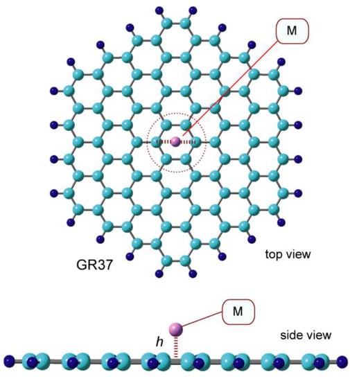 Previously, we investigated the mechanism of hydrogen storage in a graphene nanoflake (GR) doped by a lithium atom or lithium ion (i.e., the GR-M-(H2)n system, where M = Li or Li+, and n = 0–10) by DFT [23]. The binding energies of H2 to GR were calculated to be 3.83 kcal/mol (GR-Li) and 4.13 kcal/mol (GR-Li+), which suggests that the GR-Li system can be used to store H2. We showed that electron transfer from Li to graphene plays an important role in the adsorption of H2. In addition, we demonstrated that the graphene–lithium system can effectively store molecular H2. Analogously, the magnesium-based GR-Mg-H2 system has reportedly been used in a reversible hydrogen-storage device [24].