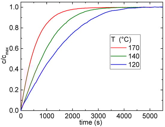 A final remark concerns the kinetics of hydrogen absorption. Figure 6 reports a comparison of the time evolution of hydrogen absorption at the three investigated temperatures (120, 140 and 170 °C) expressed as normalized capacity, starting from a common initial pressure of about 0.12 bar. As expected, the kinetics becomes faster at a higher temperature, and indeed, 95% of the maximum capacity can be reached in about 3300, 2400 and 1600 s at 120, 140 and 170 °C, respectively. These values are lower than that of pure activated LaNi5, a well-known material for hydrogen storage at room temperature, but are higher than those of non-activated LaNi5 [33].
