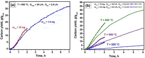 4.2. Kinetic Features of the Decomposition of Methane–Hydrogen Mixture