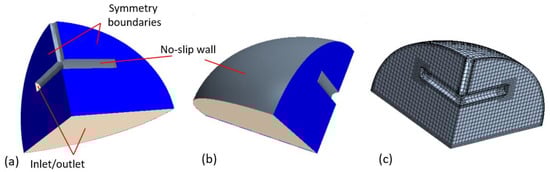 (a,b) Computational domain and boundary conditions and (c) numerical grid.