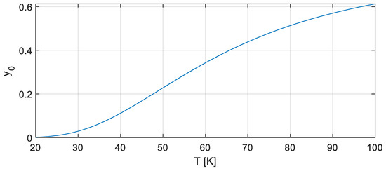 where is the tube surface area, is the effective temperature of hydrogen flowing through this tube (estimated as an average surface temperature of the pipe, assuming a small temperature difference across the pipe wall), is the temperature at the tube inlet (defined from CFD), is the specific heat of parahydrogen (evaluated by assuming a small difference between and ), is the equilibrium concentration of orthohydrogen evaluated at ( function is shown in Figure 3), is the fraction of actually converted hydrogen to the maximum possible transformation at the effective tube temperature (taken as one in examples below assuming complete conversion), and is the enthalpy of conversion. If empirical data on conversion rates is available for a specific catalyst, one can determine a corresponding value of . In Equation (11), it is assumed that the hydrogen in the tank is completely in the para-state, although a simple modification of Equation (11) can be made to account for different situations.