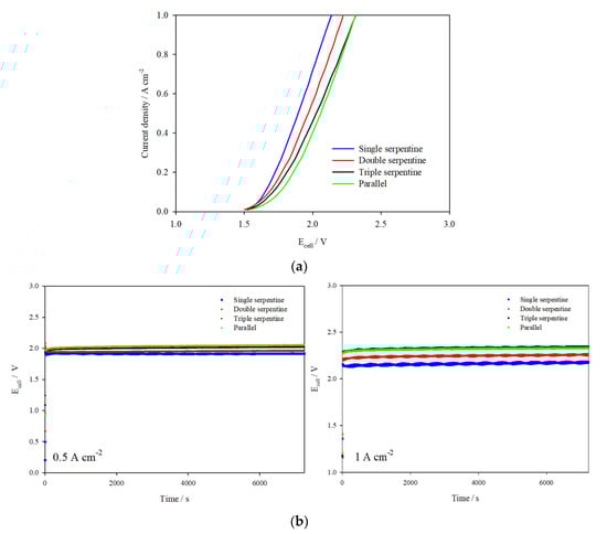 - Toghyani, S.; Afshari, E.; Baniasadi, E.; Atyabi, S. Thermal and electrochemical analysis of different flow field patterns in a PEM electrolyzer. Electrochim. Acta 2018, 267, 234–245. [Google Scholar] [CrossRef]