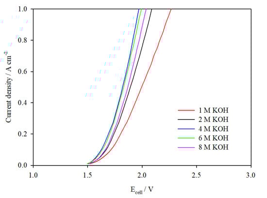 - Gilliam, R.J.; Graydon, J.W.; Kirk, D.W.; Thorpe, S.J. A review of specific conductivities of potassium hydroxide solutions for various concentrations and temperatures. Int. J. Hydrogen Energy 2007, 32, 359–364. [Google Scholar] [CrossRef]