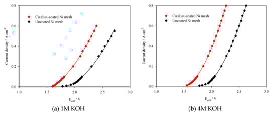 - Li, X.; Walsh, F.C.; Pletcher, D. Nickel based electrocatalysts for oxygen evolution in high current density, alkaline water electrolysers. Phys. Chem. Chem. Phys. 2011, 13, 1162–1167. [Google Scholar] [CrossRef]