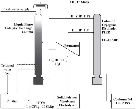 In the water detritiation system of ITER (2006), the coupling of the CECE process with cryogenic distillation has been proposed. The first process is employed for detritiation and the second one is employed for tritium recovery, as shown in Figure 4 [28].