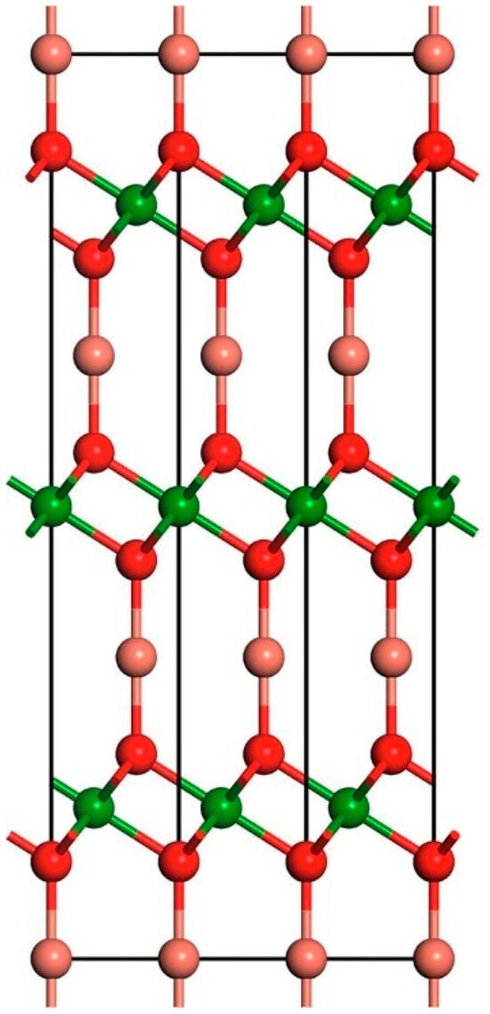 Delafossite compounds, notably CuMO2 (Figure 2), in which the M sites are filled by boron group elements, transition metals, or rare-earth elements, have attracted a lot of attention over the past few decades. This renewed attention stems from their prospective uses, which range from serving as electrodes for hydrogen generation via photoelectrochemical (PEC) water splitting to functioning as transparent conductive oxides in optoelectronic devices. Additionally, these compounds are being explored for their potential roles in spintronic and ferroelectric devices [42,43,44,45,46,47,48].