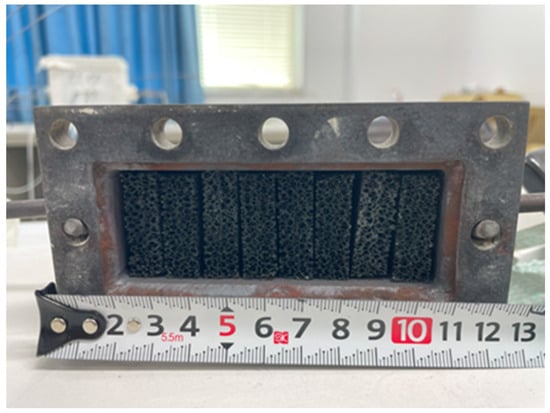 Figure 2 illustrates the details of the reactor in this study. The reactor is composed of a reaction chamber, a sweep chamber, and a H2 separation membrane. The reaction chamber and the sweep chamber are made of stainless steel with the size of 40 mm × 100 mm × 40 mm. The volume of reaction space is 16 × 10−5 m3. A porous Ni/Cr/Ru (Ni: 69.2 wt%, Cr: 29.6 wt%, Ru: 1.2 wt%) catalyst is charged in the reaction chamber. In addition, the Ni/Cr (Ni: 65 wt%, Cr: 35 wt%) catalyst is also charged in the reaction chamber as a reference catalyst. The mean hole diameter of the Ni/Cr/Ru catalyst and Ni/Cr catalyst is 1.95 mm. From the manufacturer’s brochure, the porosity of the Ni/Cr/Ru catalyst and Ni/Cr catalyst is 0.93. The weight of the charged Ni/Cr/Ru catalyst and Ni/Cr catalyst is 66.3 g and 55.3 g, respectively.
