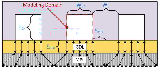 Table 1, the holes in the metal GDL were taken to be 100 microns in diameter with a pitch of 150 microns, thus a spacing of 50 microns. The thickness of the metal GDL was 50 microns which is in a similar range as the one made by Hussein et al. [