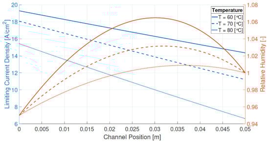 Figure 10 shows the resulting local limiting current density and the local RH distribution for three different temperatures. It is noted that the limiting current densities are surprisingly high, especially in the beginning of the channels where they range from 15–19 A/cm