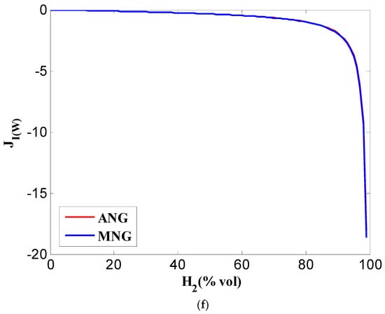 The results of index calculations under Equation (4) are shown in Figure 2b. The indicator is not critical until the plots intersect with the x-axis (), which corresponds to a hydrogen content of approximately 36% for both ANG and MNG.