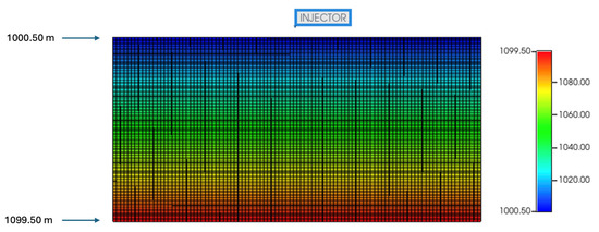 Synthetic 2D homogeneous model representing the saline aquifer studied in this paper (grid top map in meters).