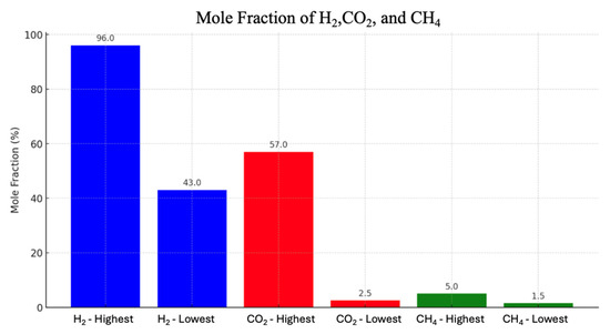 Besides the H2S impurity that may raise concerns in UHS, the formation of CH4 in UHS is another issue. Despite CH4 being a primary energy source today, the process of methanogenesis is regarded as unfavorable for hydrogen storage in light of the net-zero emissions target, and all efforts are directed towards maintaining a high purity of the stored hydrogen. The presence of CO2 impurity not only influences abiotic reactions but also plays a significant role in driving biochemical reactions, such as methanogenesis, and forms methane as a byproduct. This phenomenon has been previously observed in town gas projects. One of the town’s gas operations that lasted for a long time was the Ketzin aquifer located in Germany. Ketzin is a lower Jurassic sandstone aquifer that was utilized for town gas storage between 1964 and 1985. The town gas storage operation in this site underwent massive loss of the stored gas, degradation of underground technical infrastructure due to corrosion, and alternation in the gas composition at the withdrawal periods compared to the injected composition [8]. The Lobodice town gas storage facility is one of the few monitored and documented underground town gas storage projects, providing comprehensive insights and invaluable lessons for advancing future endeavors in reliable hydrogen storage [16,17]. The town gas composition (mole fraction) in Lobodice is 50–54% H2, 25% CH4, and a mixture of other gases (8–12% CO2, 7–12% CO, 6–10% N2) [16]. Within the first year of the gas storage, an alteration in gas composition was reported, including the formation of methane and the reduction of hydrogen, carbon dioxide, and carbon monoxide quantities, and up to 20% of the injected gas volume was lost in the formation.