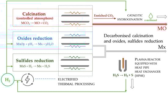 The integration of innovative electrification technologies for the indirect heating of metallurgical processes like calcination and the utilization of H