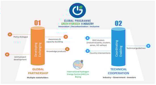 - United Nations Industrial Development Organization (UNIDO). Global Programme Green Hydrogen in Industry Report 2022; United Nations Industrial Development Organization: Vienna, Austria, 2022. [Google Scholar]