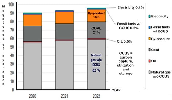 Hydrogen production by technology, 2020–2022.