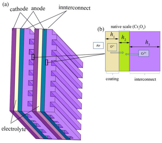 Figure 5 displays the interconnected configuration within the stack of fuel cells, alongside the formation of native oxide scales at the interface.