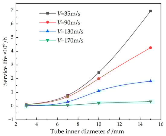 Effect of tube inner diameter on the service life (R = 23.7 mm, α = 90°).