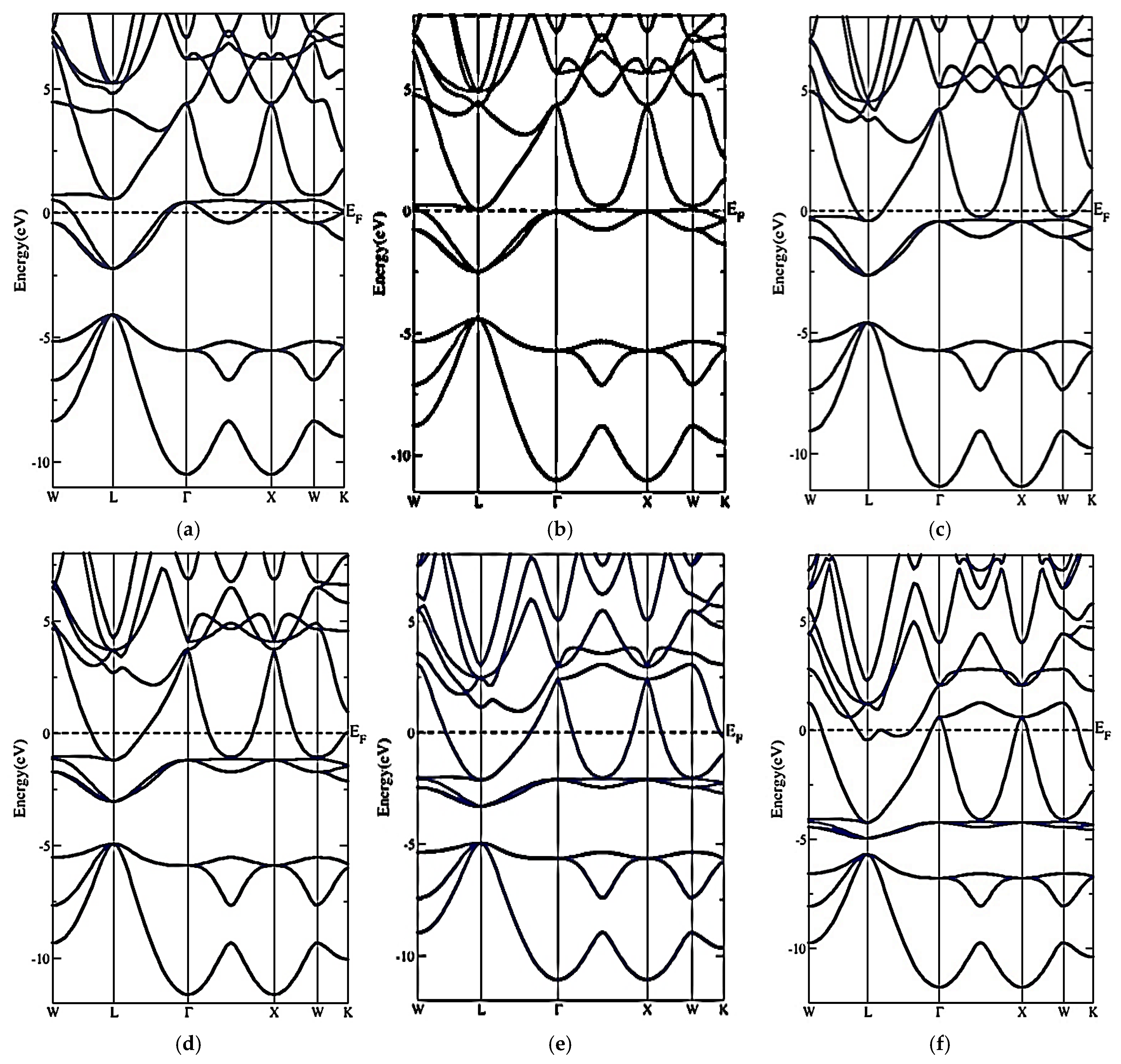 - Blaha, P.; Schwarz, K.; Madsen, G.K.; Kvasnicka, D.; Luitz, J. wien2k. In An Augmented Plane Wave+ Local Orbitals Program for Calculating Crystal Properties; Vienna University of Technology: Vienna, Austria, 2001. [Google Scholar]