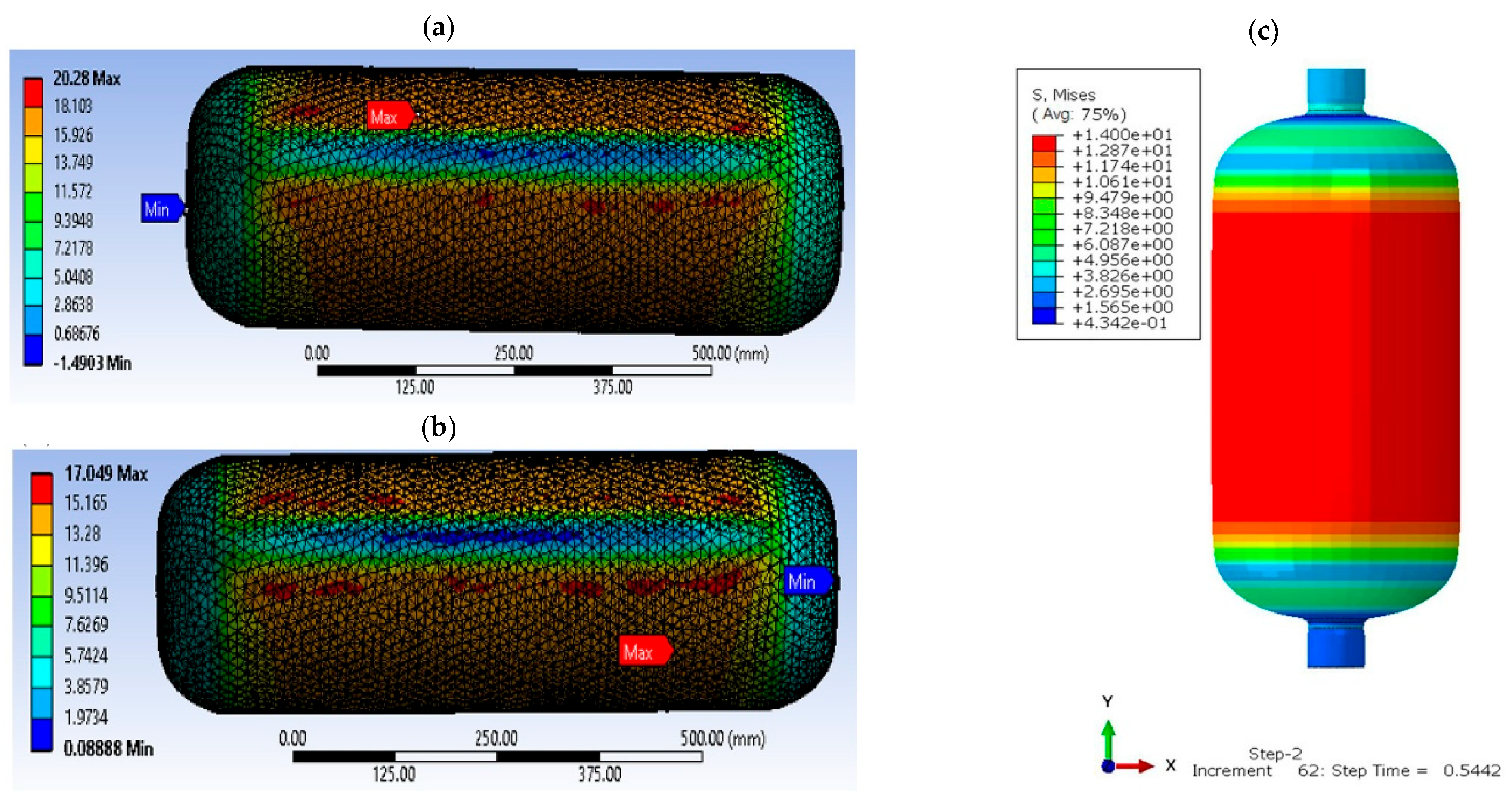- Zhang, M.; Lv, H.; Kang, H.; Zhou, W.; Zhang, C. A Literature Review of Failure Prediction and Analysis Methods for Composite High-Pressure Hydrogen Storage Tanks. Int. J. Hydrogen Energy 2019, 44, 25777–25799. [Google Scholar] [CrossRef]