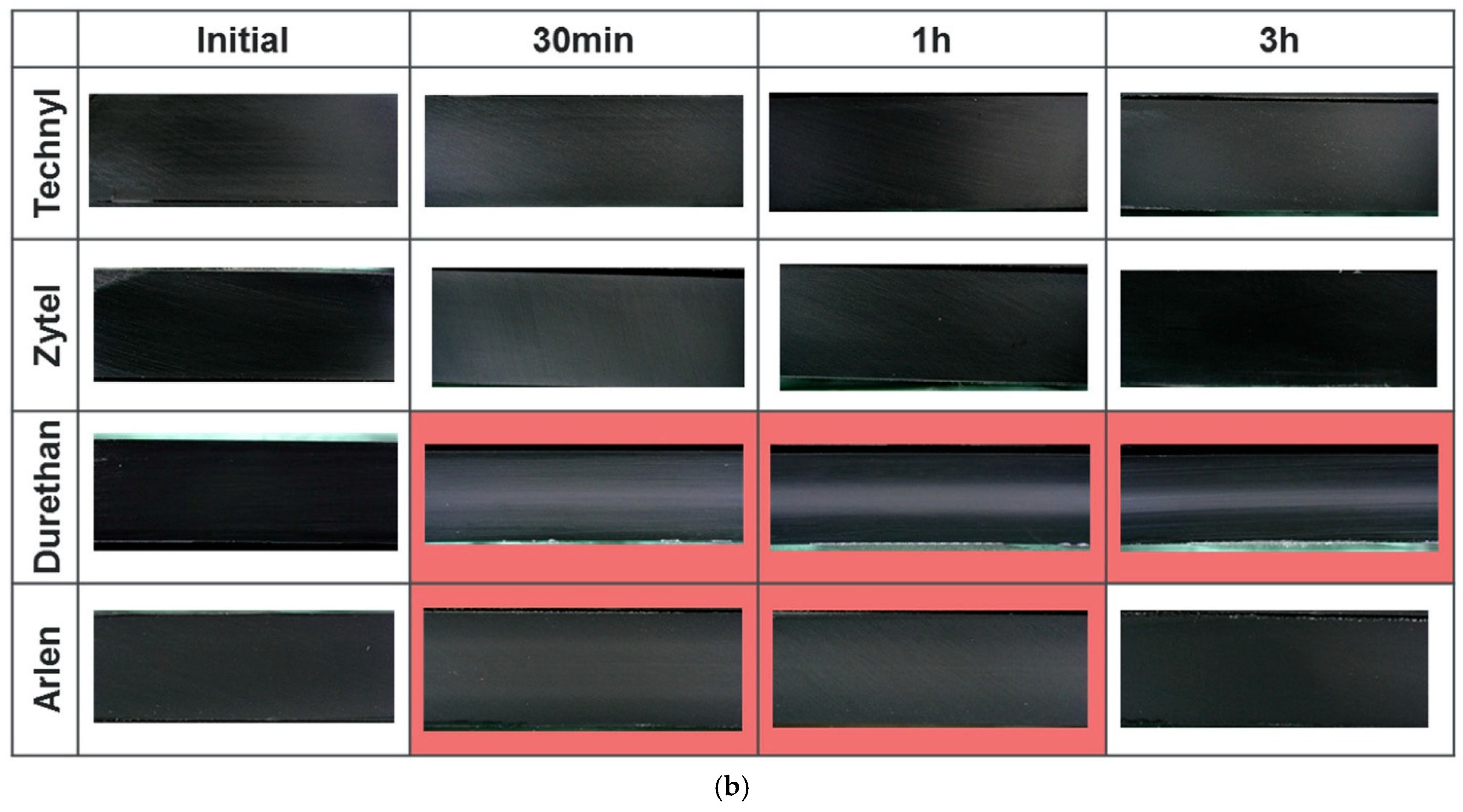 - Alexis, F.; Castagnet, S.; Nadot-Martin, C.; Robert, G.; Havet, P. Effect of Severe Thermo-Oxidative Aging on the Mechanical Behavior and Fatigue Durability of Short Glass Fiber Reinforced PA6/6.6. Int. J. Fatigue 2023, 166, 107280. [Google Scholar] [CrossRef]