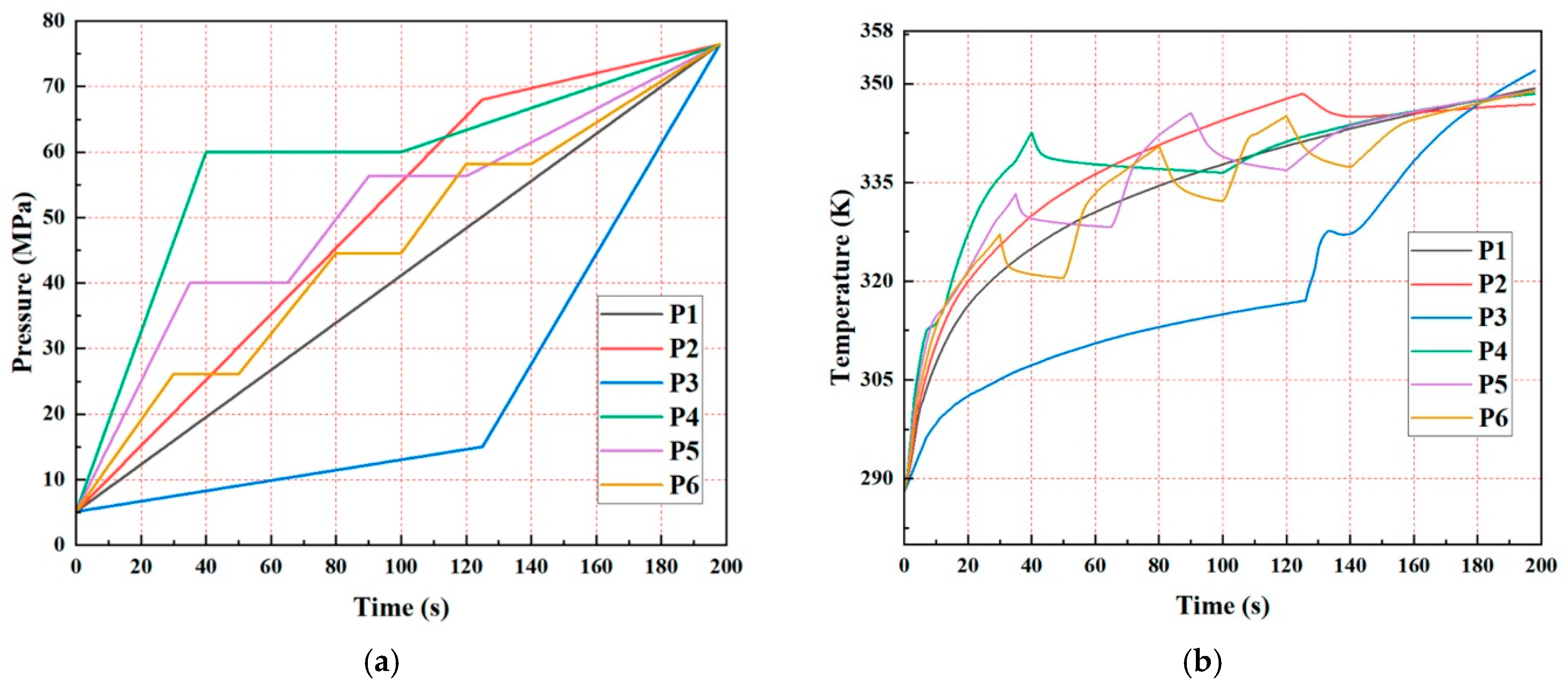 - Li, J.; Liu, J.; Zhao, B.; Wang, D.; Guo, S.; Song, J.; Li, X. Research on Temperature Rise of Type IV Composite Hydrogen Storage Cylinders in Hydrogen Fast-Filling Process. Energies 2023, 16, 2918. [Google Scholar] [CrossRef]